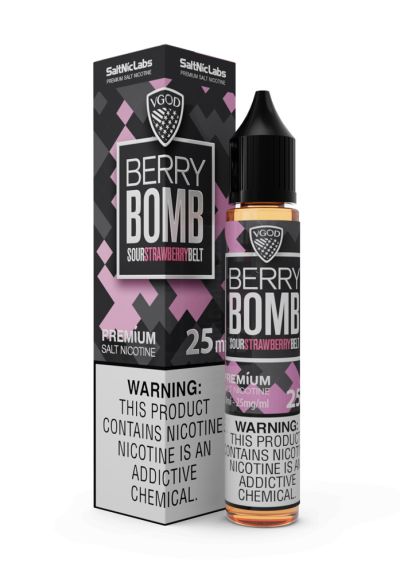 Berry Bomb by VGOD Sour Strawberry Belt by VGOD E-Liquid is a fruity candy mix of fresh strawberries blended with even more sweet and tart candied strawberries for an explosion of sublime strawberry overload.